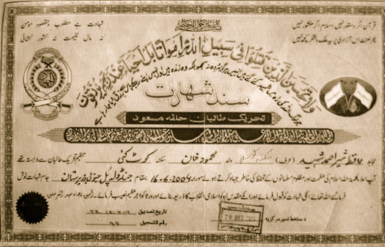 Zeugnis über die Ausbildung zum Selbstmordattentäter (Pakistan).