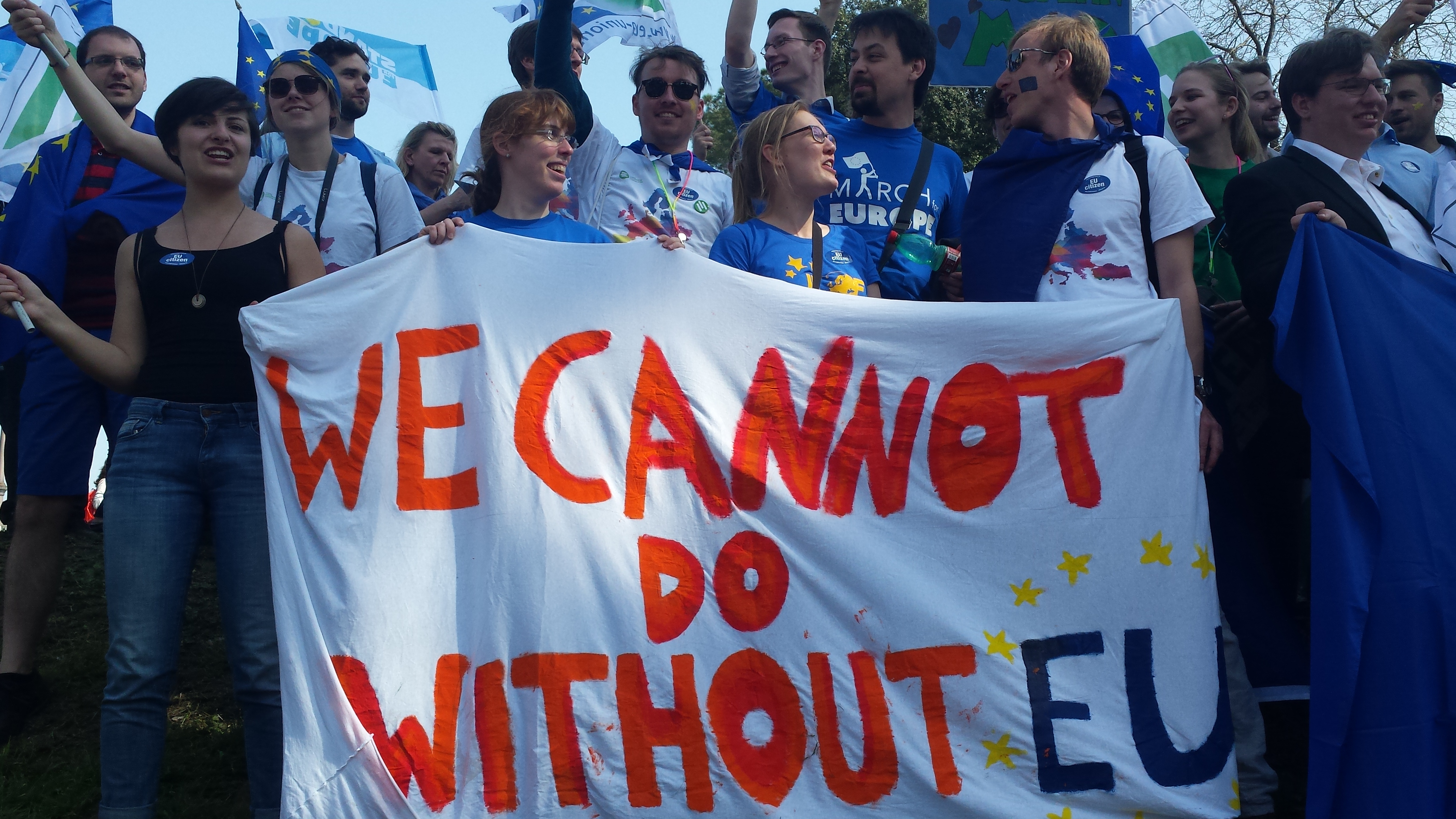 Junge europäische Föderalisten beim March for Europe, einer Demonstration anlässlich des 60. Jubiläums der Römischen Verträge, 25. März 2017, Rom - beim Konstantinbogen. Foto: Sabine Steppat
